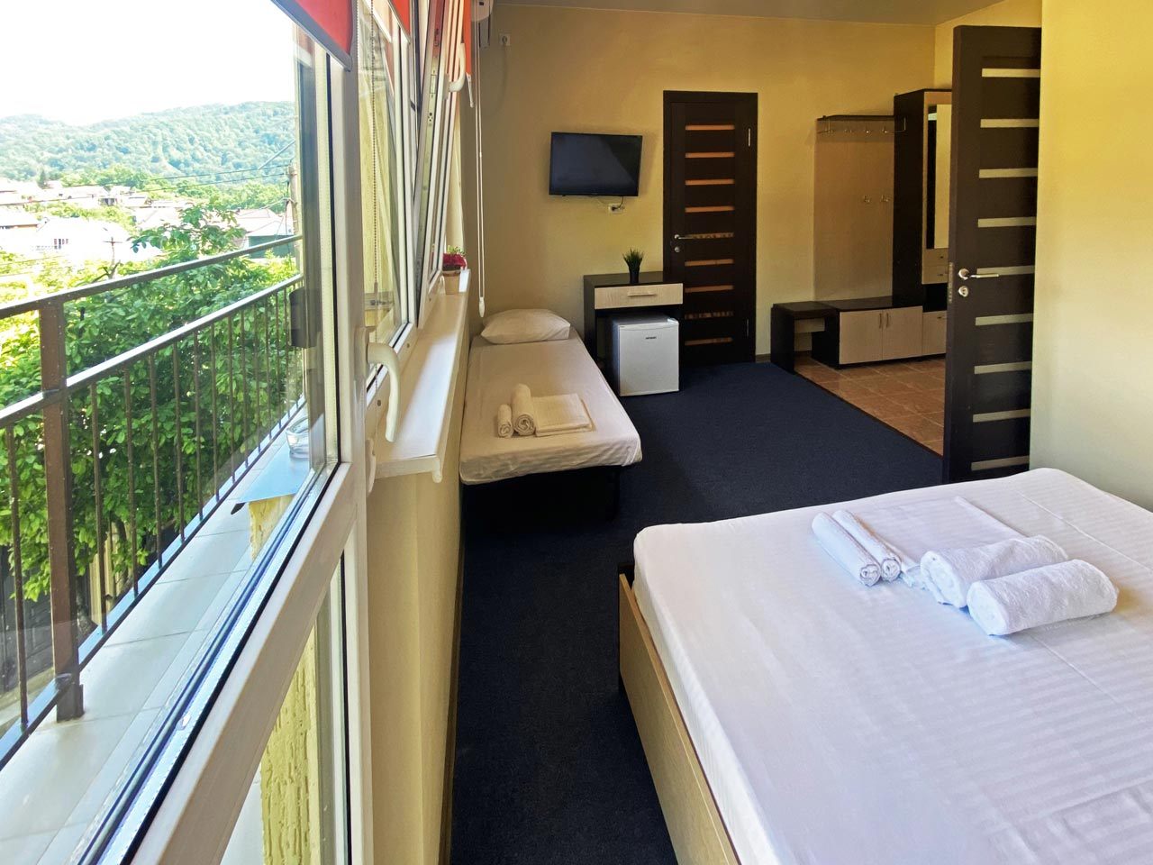 - Сервис: Wi-Fi бесплатно, смена полотенец, смена постельного белья, уборка номера