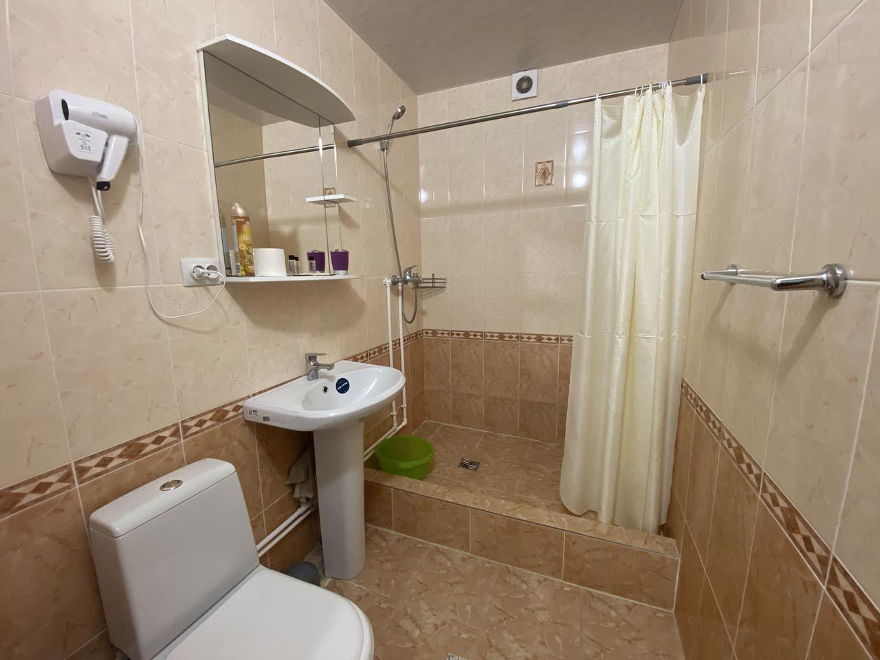 - Санузел: с душем, туалетные принадлежности, фен