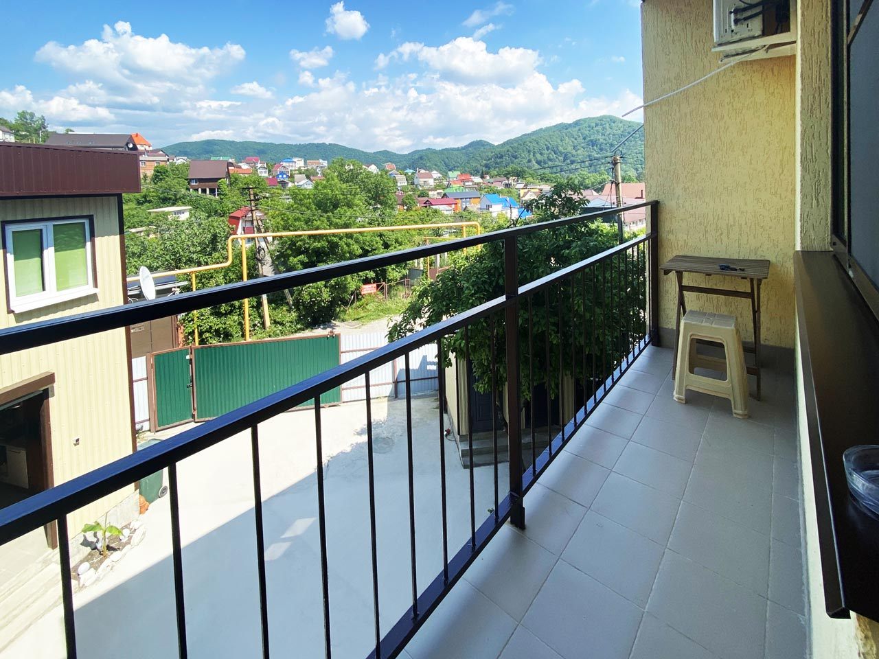 - Оборудование: кондиционер, микроволновая печь, набор посуды, плита электрическая, стиральная машина, сушилка для белья, телевизор, холодильник, электрочайник